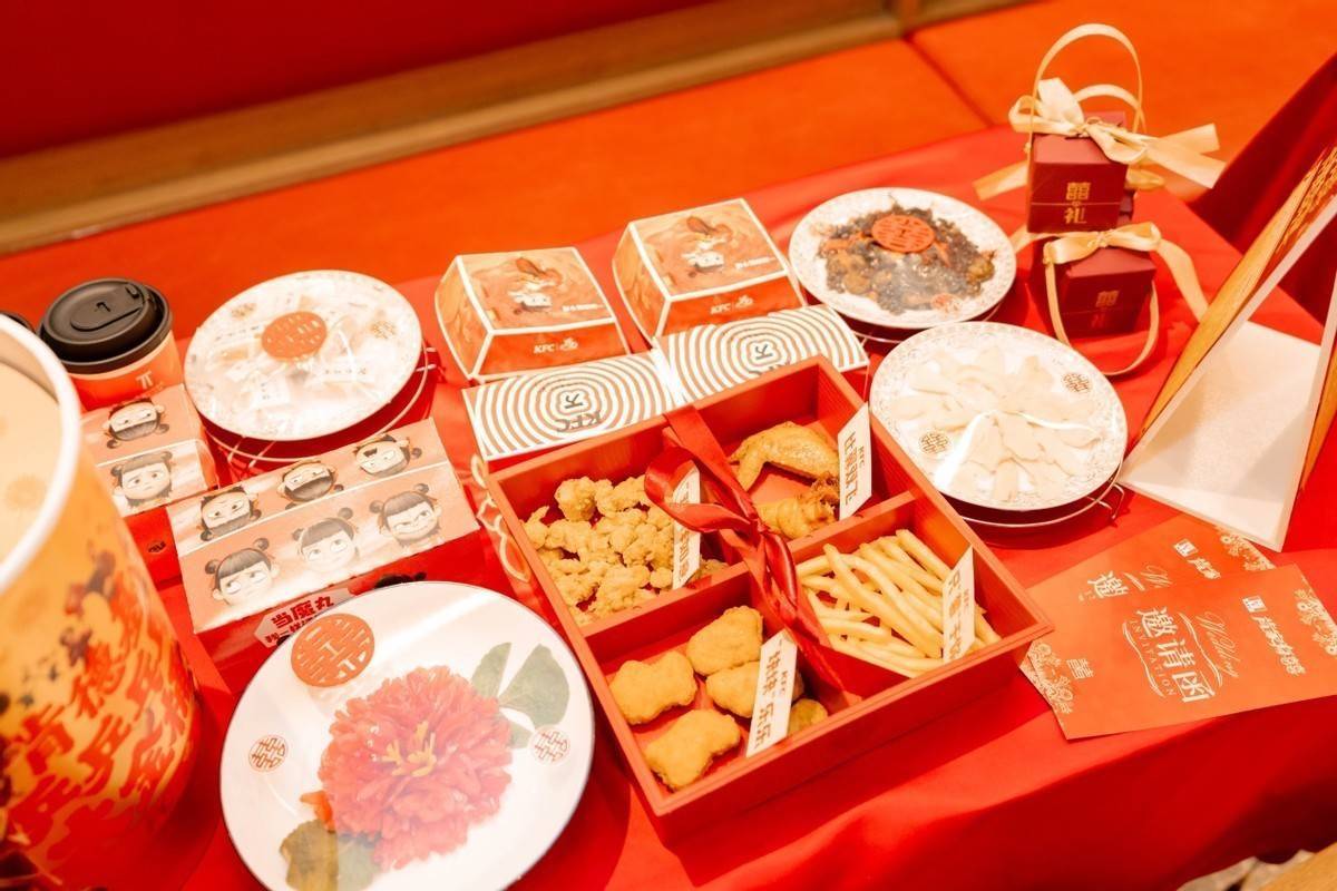 除典雅庄重的汉婚仪式外,本次非遗喜宴的美食环节也是亮点十足,创新打造“肯德基大金桶+宁乡非遗美食四小碟”的特色组合,让西式经典美味与湖湘本土非遗风味碰撞出别样火花,为现场嘉宾带来全新的味蕾体验。肯德基金桶以熟悉的美味勾勒出喜宴的甜蜜底色,内含全鸡、汉堡、原味鸡等经典美味产品,寓意团圆美满;宁乡非遗美食四小碟则尽显湖湘本土烟火气,地道非遗手艺造就原汁原味的宁乡特色,二者搭配相得益彰,中西融合的创意巧思,让喜宴美味更具层次感、更富地域特色。据悉,宁乡非遗美食四小碟是长沙市级非遗项目,源于清代,由砂仁糕、刀豆花、冰姜、紫苏梅四款经典小吃组成,分别以松酥、爽口、驱寒、酸甜的独特口感,承载着湖湘本土的乡愁与非遗底蕴,均由非遗传承人遵循古法匠心烹制而成。